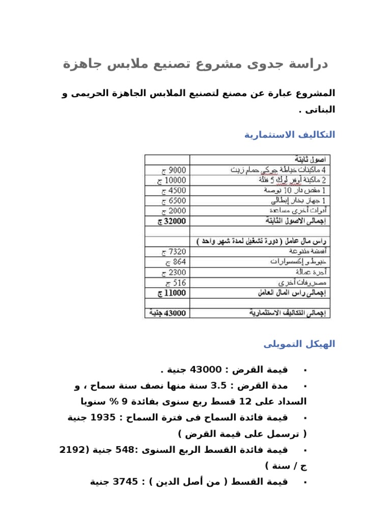 مثال أجعد بساطة دراسة جدوى لمشروع الملابس الجاهزة plasto tech com