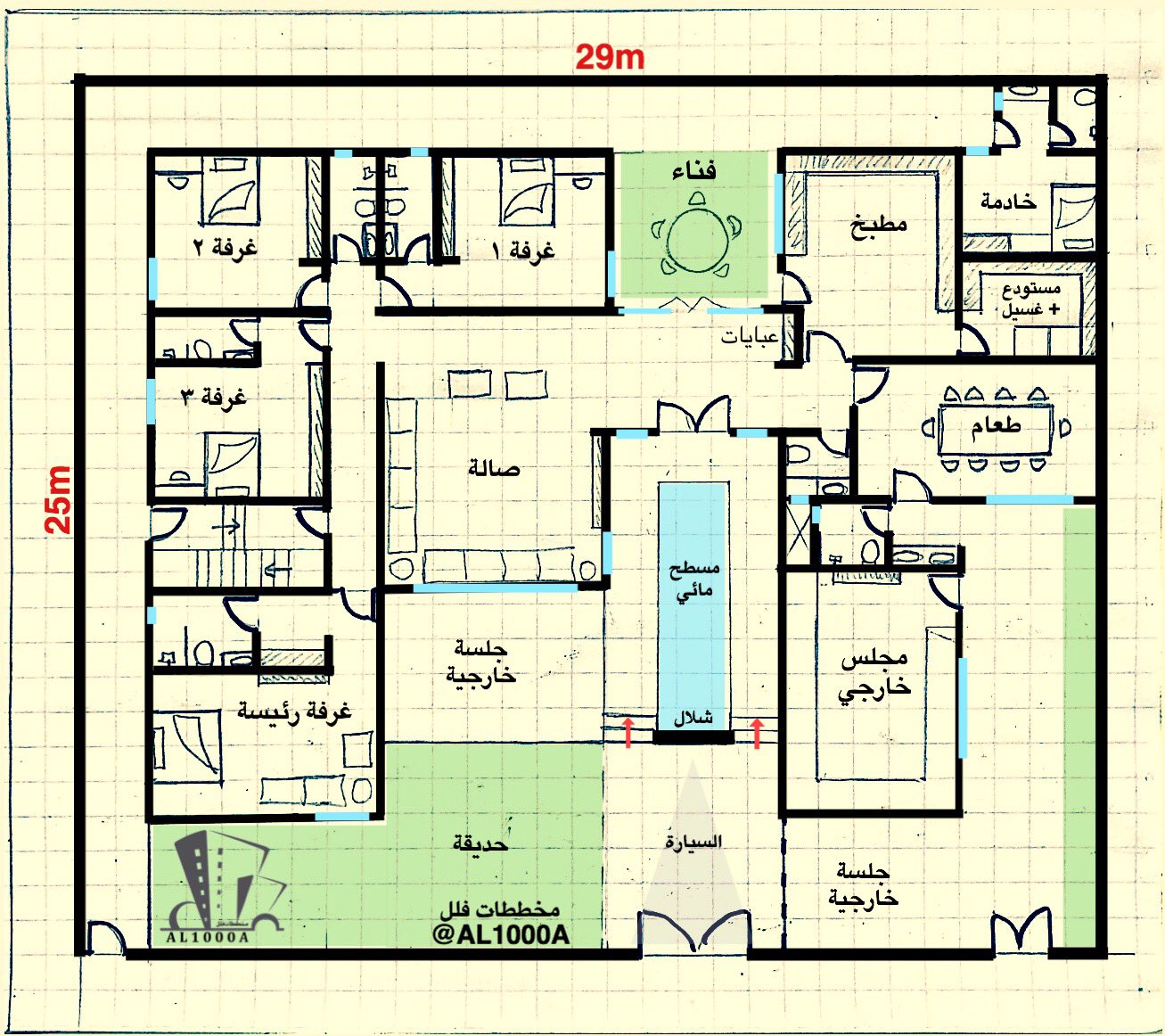 تصميم طابق واحد بحديقة مساحة البناء 210م من اعمال ashraf nassab affordable house plans family house plans my house plans